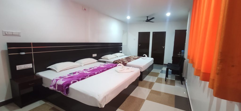 Our Family Room without Balcony is thoughtfully designed to provide a cozy and comfortable stay for up to four guests. Spanning approximately 350 sq. ft., it features two plush queen-size beds, a flat-screen TV, and a well-appointed ensuite bathroom. Perfect for parents and kids, the room offers a peaceful ambiance to unwind after exploring the scenic beauty of Munnar. This is a budget-friendly choice for families seeking comfort, convenience, and value during their stay in Munnar.